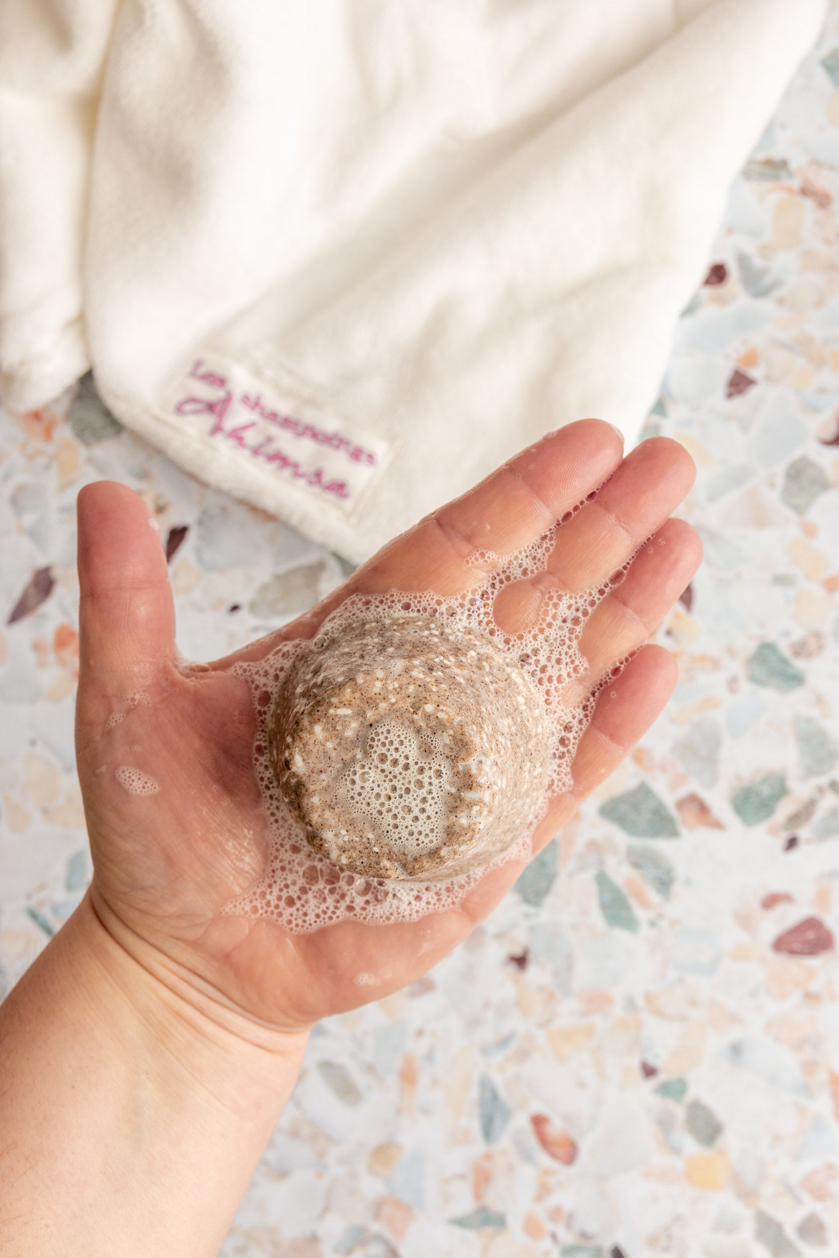 Une fois votre shampoing fini, laissez le galet reposer sur un porte savon, laissez le sécher comme un savon classique jusqu’à la prochaine utilisation.